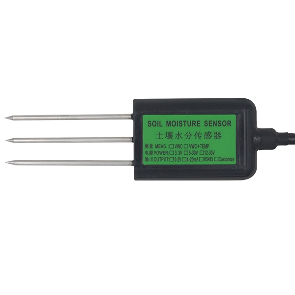 该传感器适用于土壤温度以及水分的测量,经与德国原装高精度传感器比较和土壤实际烘干称重法标定,精度高,响应快,输出稳定。受土壤含盐量影响较小,适用于各种土质。可长期埋入土壤中,耐长期电解,耐腐蚀,抽真空灌封,完全防水。