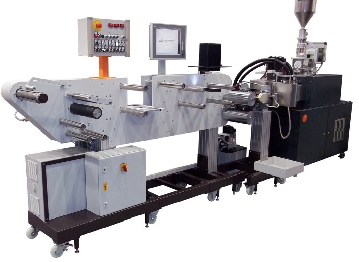 德国Goettfert 公司的 FFU 系列流延膜机设计紧凑、操作简单,与X-trude系列挤出机配套使用,进行塑料薄膜的流延、冷却、牵引以及卷绕,以得到所需薄膜,一般用于实验室,也可用于食品工业及包装等领域。