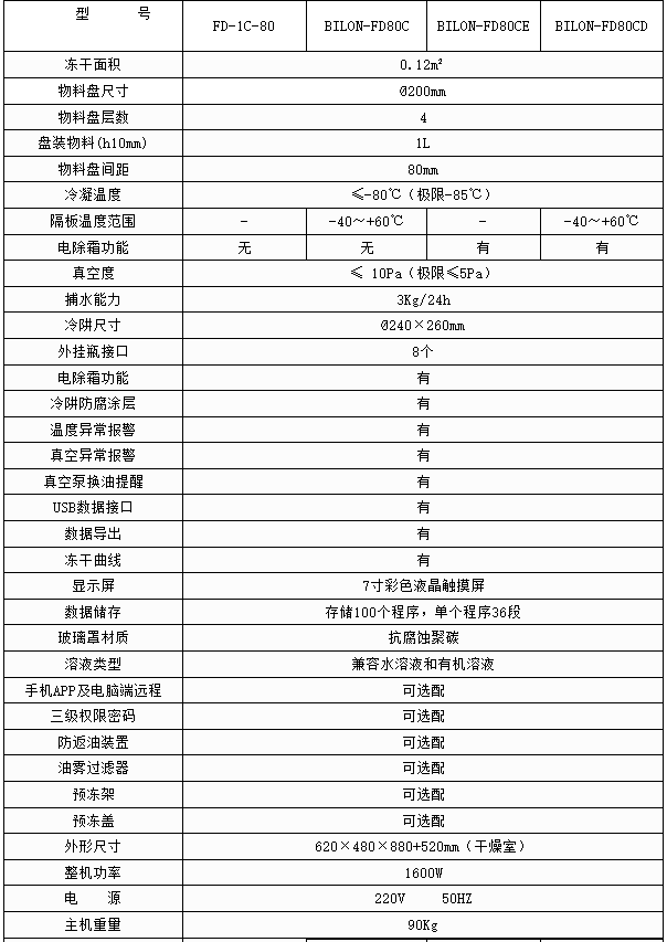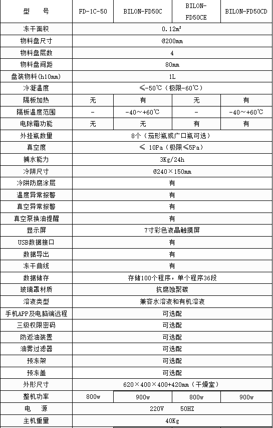 | 台式冻干机(实验室冷冻干燥机) | 上海比朗 | BILON-FD50CD | 国产 | 49800元 |