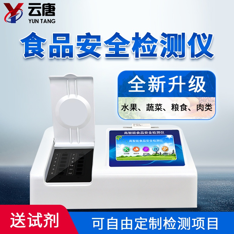可快速检测各类食品中的甲醛、吊白块、二氧化硫、亚硝酸盐、双氧水、硼砂、农药残留、乳及乳制品中蛋白质的含量,仪器预留其他项目检测程序和端口,根据日后需求可方便的自主增加检测项目。