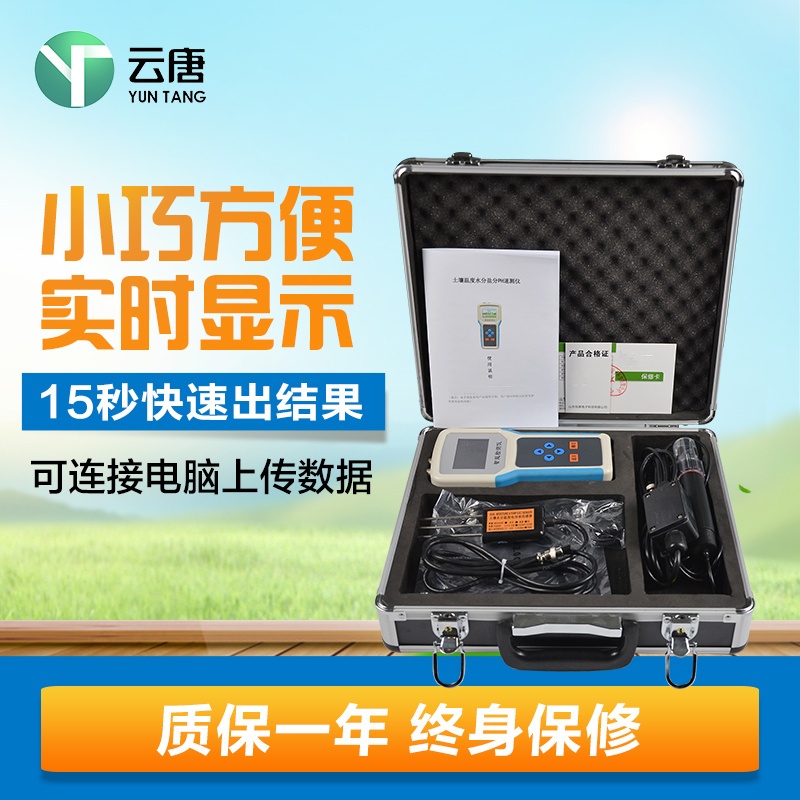 土壤温度、水分、盐分PH速测仪采用一体化结构设计,外置SD卡,主机可以实时采集被测环境土壤的温度、水分、盐分、PH等多个参数,一键上传数据等。