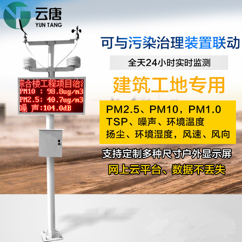 随着我国对环境治理要求越来越高,PM2.5越来越成为环境监测的重要指标,而空气中的扬尘作为影响PM2.5指标的重要组成部分,也成为各级环保部门监控的对象。当前检测粉尘的主要手段是手工采样、分析,检测效率低,而且浪费大量人力物力。我公司为改善空气质量利用无线传感器技术和激光粉尘测试设备,自助研发的全天候户外扬尘监控系统,除了可以实现扬尘监控以外,还可以监测PM2.5、PM10,PM1.0、TSP、噪声、环境温度,环境湿度,风速、风向等环境因子, 各测试点的测试数据通过无线通讯直接上传到监测后台,大大节省了环保部门监测成本,提高监测效率。