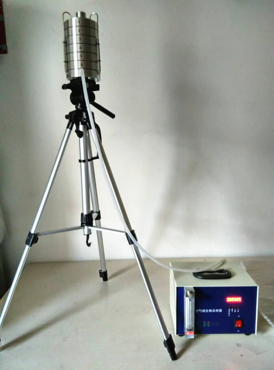 六级空气微生物采样器模拟人呼吸道的解剖结构和空气动力学生理特征,采样惯性撞击原理而将悬浮在空气中的微生物粒子分别等级地收集到采样介质表面上,然后供培养及微生物学分析。整个仪器是由撞击器、主机(流量计)、定时器、三脚架组成。撞击器是6层有微小孔眼的铝合金圆盘。圆盘下放琼脂平皿,每圆盘间有密封胶圈,在通过三个弹簧挂钩把圆盘牢固地联在一起。每个圆盘上有400个成环行排列、逐层减小、尺寸精确的小孔,标准采样流量为1立方呎(28.3L/min)。当含有微生物粒子的气流进入*上层的采样口后,由于气流的逐层增高,不同大小的微生物粒子按空气动力学特征分别撞击在相应的琼脂表面上。捕获在各级上的粒子大小范围是由该级孔眼的气流速度和上一级的粒子截阻率而决定的。第1、2级类似人的上呼吸道捕获的粒子,第3~6级类似人的下呼吸道捕获的粒子,这就相当程度上复制了这些粒子在呼吸道的穿透作用和沉着部位。