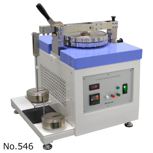 该设备是通过真空自动研磨法,使在2块磨砂玻璃制圆盘间的颜料和展色剂相混合后,再使其分开的胡佛式研磨机。分开后再使用粒度测定仪来检查其分散性。
