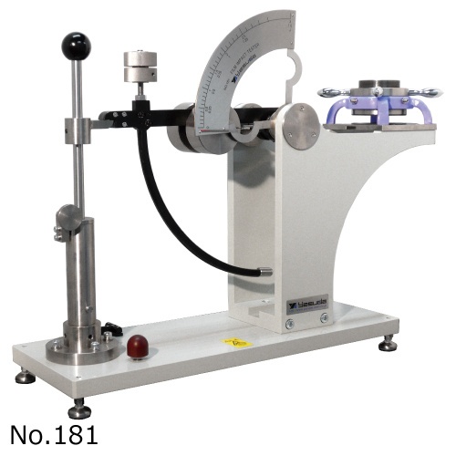 该设备是用于对塑料膜、纸张等冲击开孔强度进行评价的冲击试验机。将冲击球安装在摆锤尖端位置,通过刻度目视读取冲击下在试片上开孔所必须的能量。