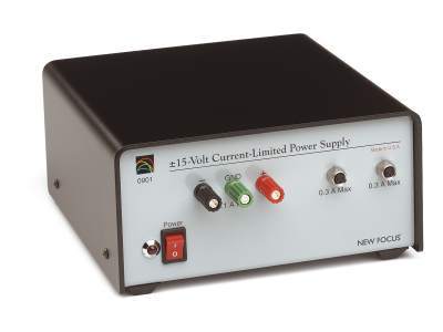 0901 型电源旨在与 New Focus 光接收器和放大器配合使用,但也可用于一般的实验室应用。三个 ±15-V 输出中的两个具有与 New Focus 光接收器和放大器提供的电缆相匹配的微型连接器。第三个输出具有与其他实验室设备配合使用的蕉形插座。