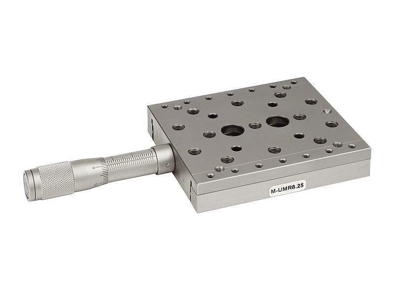 UMR 系列双列滚珠轴承线性平移台具有坚固的钢结构和双列滚珠轴承,提供优异、平滑、线性的行程,同时还能承载高负载。移动托架预装入了两个弹簧,确保与测微计的恒定接触和无侧隙运动。