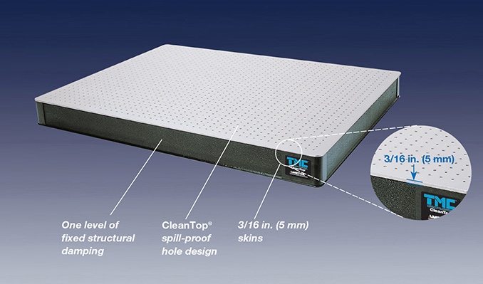 TMC的78和77系列CleanTop®面包板对于小型桌面提供良好的刚度和阻尼。共有2in.和4in.(50mm,100mm)厚度的可以选择。这些桌面都具有CleanTop的防溢孔技术和高密度钢制蜂窝芯。他们都可以定制来满足用户要求如定制特殊安装孔、通孔、定制特殊形状和特殊材料等。TMC的77和78系列CleanTop面包板被推荐给几乎所有需要使用面包板的应用。