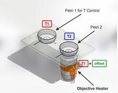 Step 1: Objective not in contact with Petri 2; Objective Heater Off.