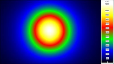 通过测试漫反射屏幕的亮度值,经过对系统的空间信息、角度信息、光度系统校正,在不同的测试方向得到的亮度值可转换为照度值E(x,y).该屏幕一个反射表面满足漫反射条件,就可以通过图像解析的亮度测试技术直接得到空间的照度分布。