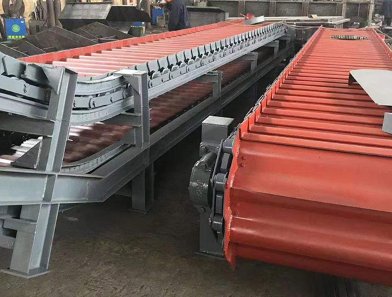 3、与带式输送机相比,承托式输送机可在较大倾角和较小弯曲半径条件下输送物料。板式输送机的倾角可达30°~35°,弯曲半径一般约为3m—5m。