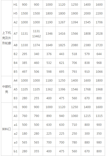 TH型环链斗式提升机结构参数表: