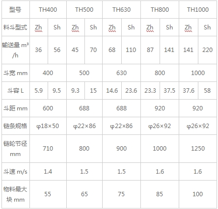 环链斗式提升机TH400-TH1000技术参数表: