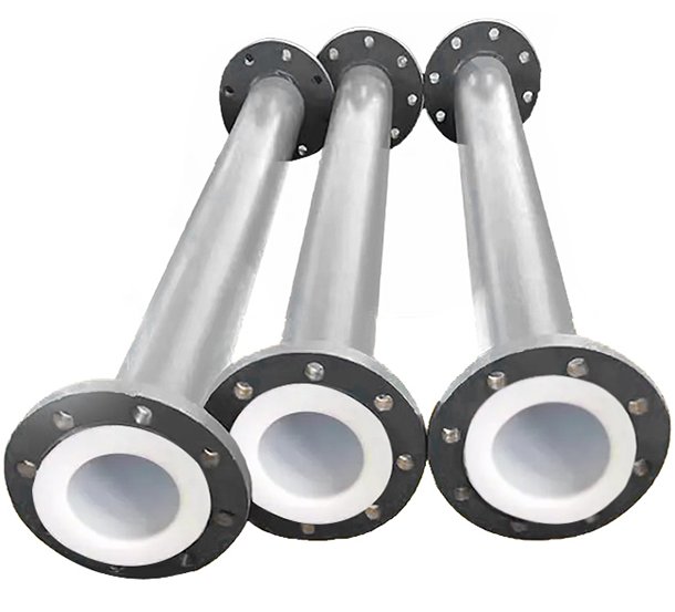 钢衬四氟紧衬翻边管道是将钢件焊接加工完成后,将PTFE成品塑料管通过机械拉力拉入预制好的直管中,使内衬层与钢件紧密结合,然后通过火焰加热或盐药水加热,使密封普通PTFE管到一定温度,翻边成型为密封面,后再进行应力消除。