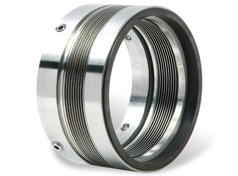 波纹管密封无动态的辅助密封,所以不会和轴相对滑动导致密封失效,同时波纹管作为动组件时,在旋转过程中因离心力可以实现自清洗。