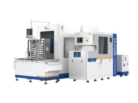 使用高精密电主轴,高速驱动金刚石砂轮,加工粘贴在陶瓷盘上的产品。减薄过程中,产品厚度实时测量,直至达到设定的目标厚度。自动清洗磨削残留物,通过机械手自动上/下陶瓷盘完成自动上料和下料。