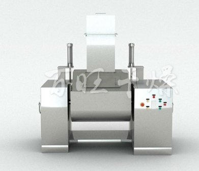 工作原理:本机通过机械传动,使S式搅拌桨旋转,推动物料往复翻动,均匀混合,操作时采用电气控制,可设定混合时间,到时自动停机,电动倒料,从而提高每批物料的混合质量,达到高均匀度的混合。