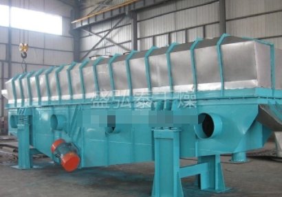 物料自进料进口进入机内,在振动力作用下,物料沿水平面流化床抛掷,向前连续运动,热风向上穿过流化床同湿物料换热后,湿空气经旋风分离器除尘后由排风1:3排出.干燥物料由排料进口排出。