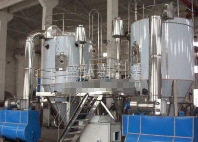 空气经过滤和加热,进入干燥器顶部空气分配器,热空气呈螺旋状均匀地进入干燥室。料液经塔体顶部的高速离心雾化器,(旋转)喷雾成极细微的雾状液珠,与热空气并流接触在极短的时间内可干燥为成品。成品连续地由干燥塔底部和旋风分离器中输出,废气由风机排空。