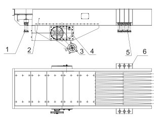 1.后弹簧支架 2.机架 3.电机 4.振动器 5.弹簧 6.前弹簧支架