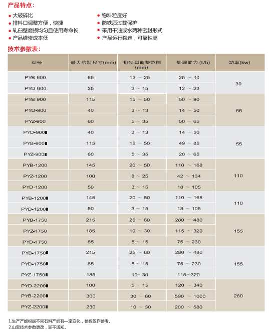 本机结构紧凑,生产效率高。采用碗型轴承具有较高的精度储备,并采用集中稀油润滑系统和新颖的干油密封防尘系统,当不能破碎物料进入破碎腔时,弹簧安全装置能保护设备不受损坏,通常采用在二级破碎、三级破碎中。适用于破碎中等以上硬度的各种矿石和岩石 ,如铁矿石、铜矿石、石灰石、石英、花岗岩、砂岩等。标准型适用于中碎,中型,短头型都使用于细碎,广泛应用于选矿、建材、水利、化学工业等领域。