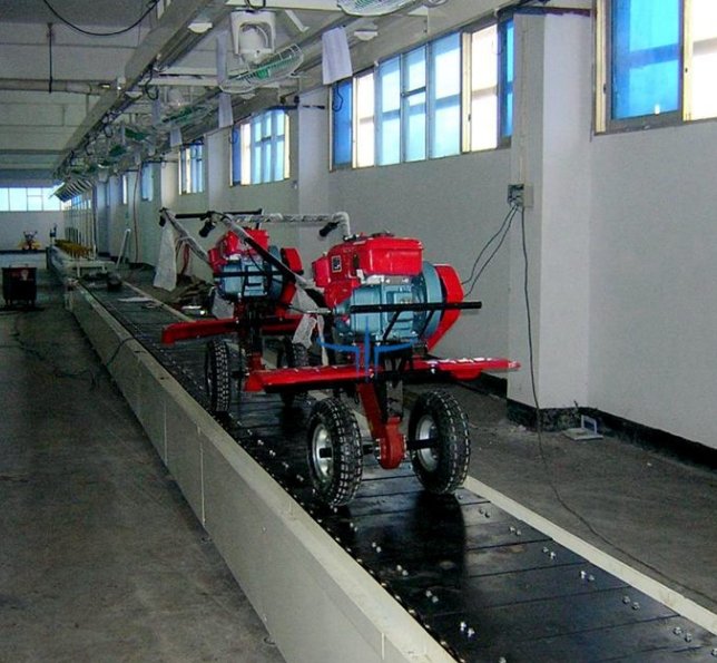 廊坊农机生产线,廊坊农机流水线,廊坊旋根机生产线可配置顶蓬、照明、风扇等系统。 部装线基本构造:主体材料为钢结构件,采用组合装配形式,中间为双流道无动力手推输送线。无动力输送线体分上、下两层,上层采用双流道无动力手推传送PVC工装板输送线,下层为双流道无动力手推PVC工装板返回线(靠自由落差、人工辅助返回上线端)。