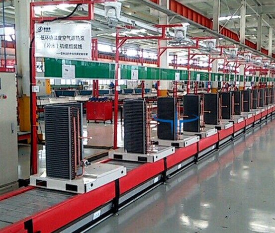 廊坊空气源热泵生产线,廊坊空气能热泵生产线,廊坊热泵热水器生产线主要应用板链线传送,配合无动力滚筒进行组装,全套组装线使用板链线按节拍传送部分配有风扇,气动工具,工艺看板等,检测部分拥有专业检测室,传送过程中*后测试阶段用滚筒线传输。
