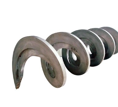 加强螺旋叶片外圈厚度大于内圈厚度,一般用于无轴螺旋叶片,对比常规的无轴螺旋叶片,具有抗折、抗扭、抗伸缩等力学特性;加强型无轴螺旋叶片在恶劣工况下,能够有效的保证输送状态的稳定,而加厚的外圈面,抗磨损时间更久,延长叶片的使用寿命。