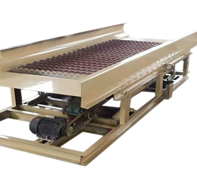 溜槽底板是由天然橡胶制成,鼓动架作上,下往复运动,从而橡胶板也就作上,下运动,通过这样往复运动使矿浆中的轻重矿物分层,沉积层给终保持松散状态,有利于重矿物的回收.矿浆经过2800mm长的分选过程,重矿物和金粒沉积在溜格间的底部,轻矿物从尾部连续排出.可配置在挖沙淘金船,移动式淘金机,固定式淘金设备,沙场洗砂机外接等做为淘金系统使用。