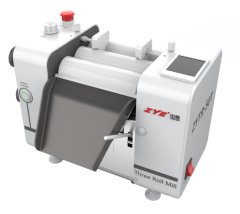 ZYTR-50T 三辊机通过 “物料预处理 - 进料 - 初步研磨 - 精细研磨 - 物料收集” 的流程,利用三根辊筒的转速差与精准辊隙,产生挤压、剪切力,实现物料超细研磨,具体工作原理如下: