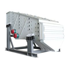 当筛机起动后,呈对称布置的两台相同型号和规格的振动电机或激振器作同步反向运转,其产生的激振力通过传振体—电机或激振器底座传递到整个振动体—筛箱上,使筛箱带动筛面作周期性振动,从而使筛面上的物料随筛箱一同作定向跳跃式运动,其间,小于筛面孔径的物料通过筛孔落到下层,成为筛下物,大于筛面孔径的物料经连续跳跃运动后从排料口排出,终完成筛分作业。